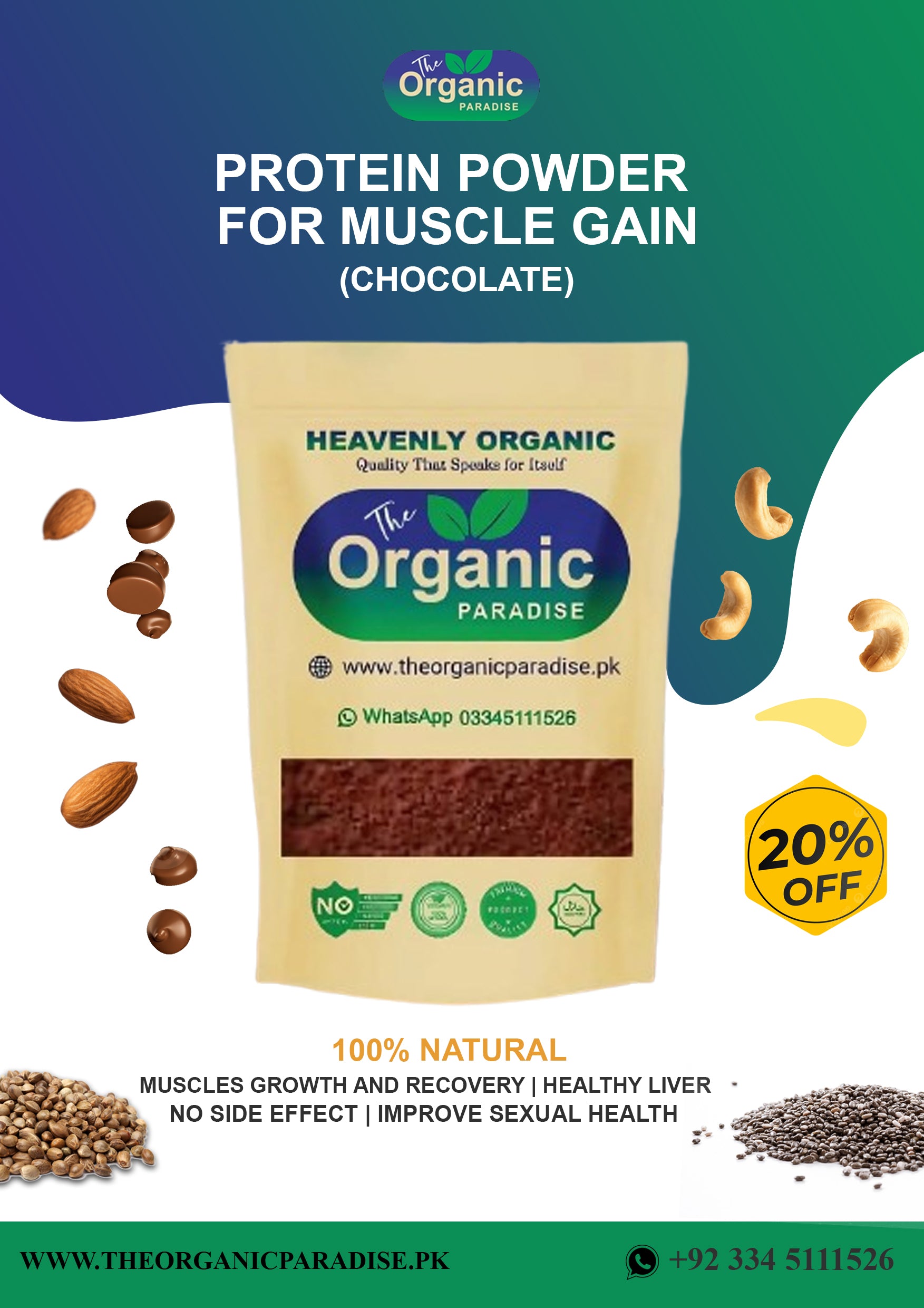 کیا آپ عضلات بڑھانے، ریکوری بہتر بنانے، اور اپنے جسم کو صحیح طریقے سے توانائی دینے کے لیے بہترین پروٹین تلاش کر رہے ہیں؟ اگر آپ ویے پروٹین کے مضر اثرات سے تھک چکے ہیں یا صرف ایک صاف اور پلانٹ بیسڈ آپشن چاہتے ہیں جو چاکلیٹ کا مزیدار ذائقہ بھی فراہم کرے 🍫، تو TheOrganicParadise.pk آپ کو بہترین سگنیچر پلانٹ پروٹین پاؤڈر چاکلیٹ ذائقے میں پیش کرتا ہے، جو طاقتور قدرتی اجزاء اور کاکاؤ پاؤڈر سے تیار کیا گیا ہے تاکہ آپ کو چاکلیٹ کا مزیدار ذائقہ ملے اور آپ کے عضلات کی نمو بغیر کسی منفی اثرات کے ہو!