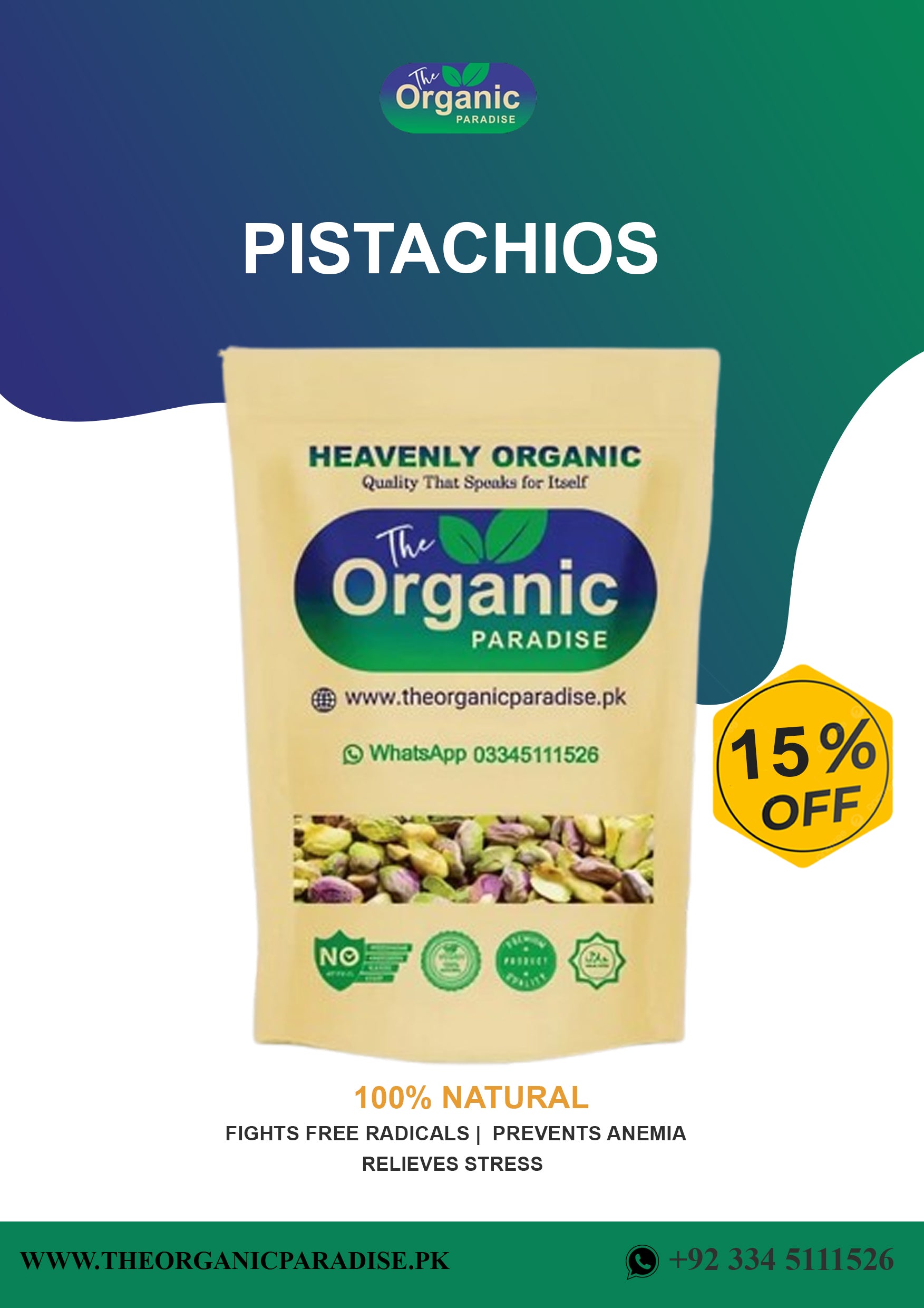 دی اورگینک پیراڈائز آپ کے لیے 100% خالص، اورگینک اور غذائیت سے بھرپور پستہ لایا ہے، جو پروٹین، فائبر، صحت مند چکنائی، اینٹی آکسیڈنٹس، اور ضروری وٹامنز سے بھرپور ہے۔ یہ مزیدار اور خستہ پستہ دل کی صحت کو بہتر بناتا ہے، دماغی کارکردگی کو بڑھاتا ہے، اور وزن کو کنٹرول میں رکھنے میں مدد دیتا ہے۔ ہمارا وعدہ آپ کی صحت کا خیال رکھنا ہے!