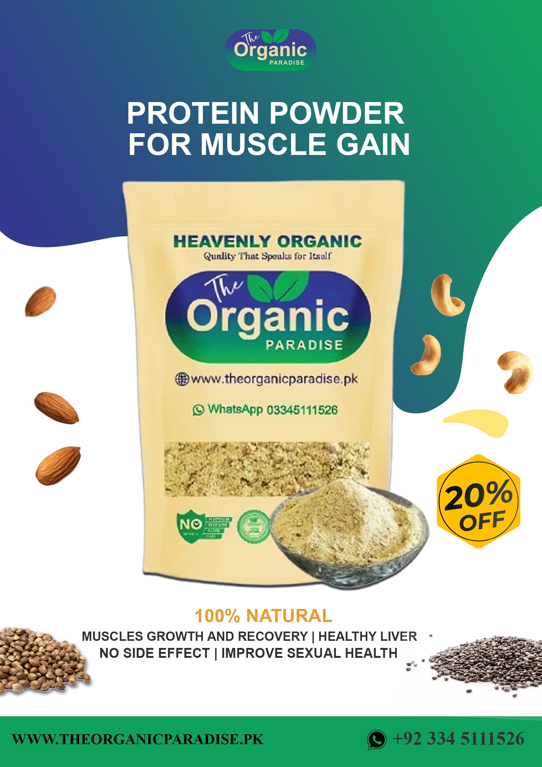 کیا آپ عضلات بڑھانے، ریکوری بہتر بنانے، اور اپنے جسم کو صحیح طریقے سے توانائی دینے کے لیے بہترین پروٹین تلاش کر رہے ہیں؟ اگر آپ ویے پروٹین کے مضر اثرات سے تھک چکے ہیں یا صرف ایک صاف اور پلانٹ بیسڈ آپشن چاہتے ہیں، تو TheOrganicParadise.pk آپ کو بہترین سگنیچر پلانٹ پروٹین پاؤڈر پیش کرتا ہے، جو طاقتور قدرتی اجزاء سے تیار کیا گیا ہے اور جو آپ کے عضلات کی نمو کو بغیر کسی منفی اثرات کے بڑھاتا ہے!